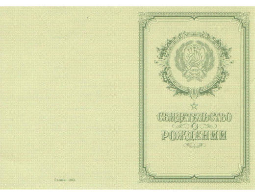- При желании вы можете заказать свидетельство о рождении СССР 1950 - 1953 гг. времен СССР;
