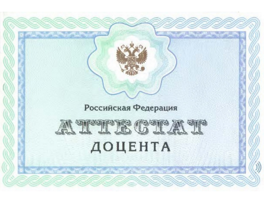 Аттестат доцента по специальности 2009 - 2022 гг.