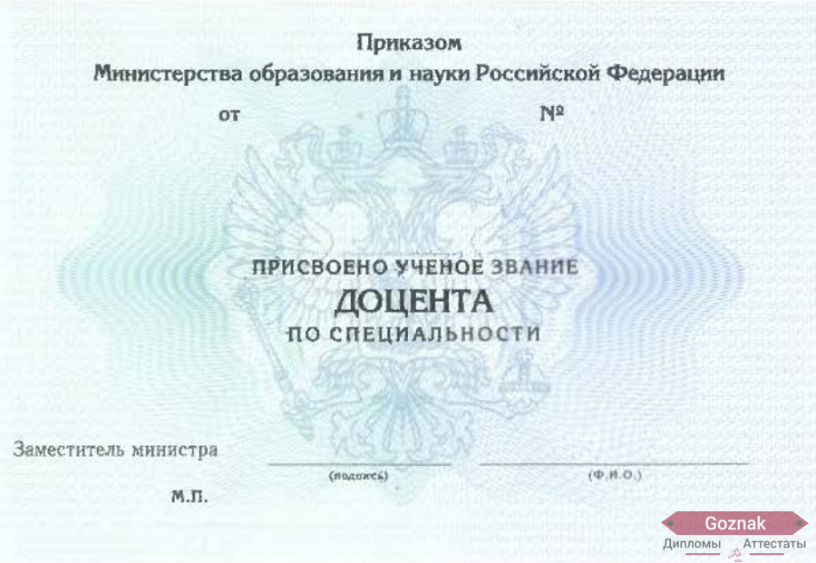 Компания «Гознак-Дипломы» успешно работает на рынке более 15 лет и предлагает Вам купить аттестат доцента по специальности 2009 - 2022 гг. выгодно по хорошим ценам на настоящем бланке Гознак с оригинальными печатями и подлинными подписями. Документы имеют все степени защиты, оформлены по государственным нормам и с учетом особенностей конкретных учебных заведений. Аттестат доцента по специальности 2009 - 2022 гг. на 100% соответствуют подлинникам, поэтому проблем точно не доставят, которые без опаски можно предоставлять в отдел кадров: