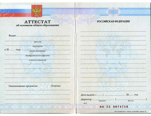 Купить аттестат за 9 класс 2007 - 2009 гг. легко!