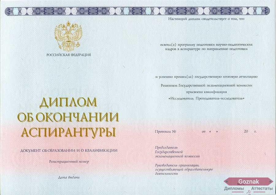 Компания «Гознак-Дипломы» успешно работает на рынке более 15 лет и предлагает Вам купить диплом аспирантуры 2014 - 2026 гг. выгодно по хорошим ценам на настоящем бланке Гознак с оригинальными печатями и подлинными подписями. Документы имеют все степени защиты, оформлены по государственным нормам и с учетом особенностей конкретных учебных заведений. Диплом аспирантуры 2014 - 2026 гг. на 100% соответствуют подлинникам, поэтому проблем точно не доставят, которые без опаски можно предоставлять в отдел кадров: