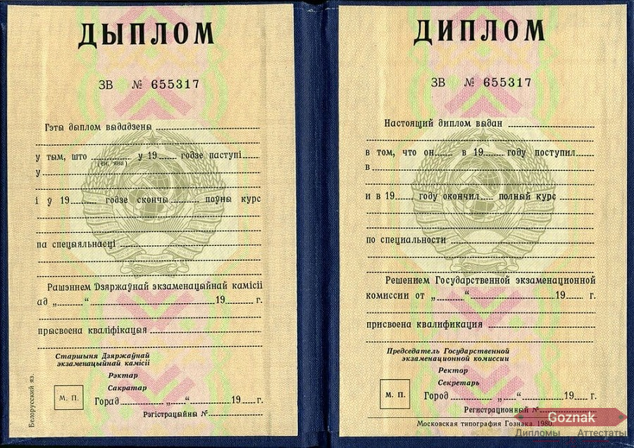 - При желании вы можете заказать диплом о высшем образовании Белоруссии 1970 - 1993 гг. времен СССР;