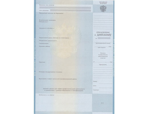 Диплом специалиста 2010 - 2011 гг. заполняется профессиональными специалистами по установленным правилам и нормам министерства образования РФ. Документ на 100% соответствует всем требованиями Министерства Образования и Науки РФ.