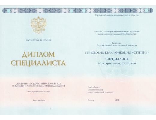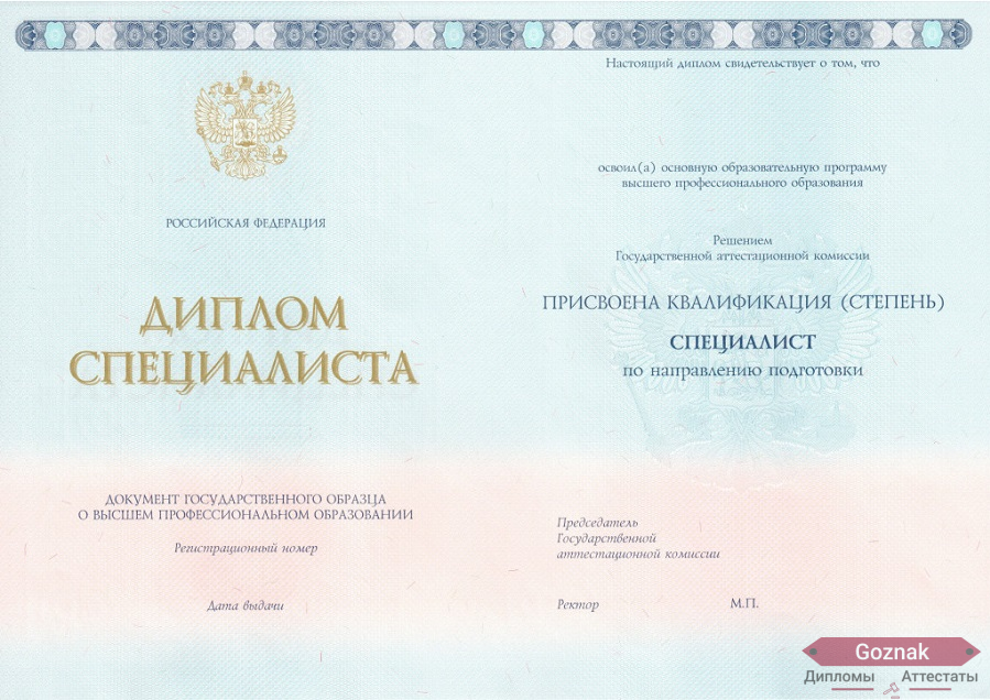 Компания «Гознак-Дипломы» успешно работает на рынке более 15 лет и предлагает Вам купить диплом специалиста 2014 - 2026 гг. выгодно по хорошим ценам на настоящем бланке Гознак с оригинальными печатями и подлинными подписями. Документы имеют все степени защиты, оформлены по государственным нормам и с учетом особенностей конкретных учебных заведений. Диплом специалиста 2014 - 2026 гг. на 100% соответствуют подлинникам, поэтому проблем точно не доставят, которые без опаски можно предоставлять в отдел кадров:
