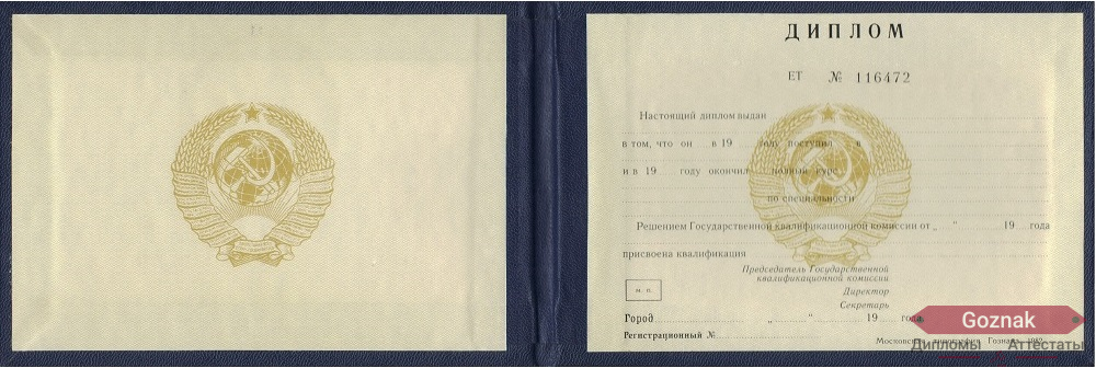 - При желании вы можете заказать диплом техникума 1970 - 1996 гг. времен СССР;