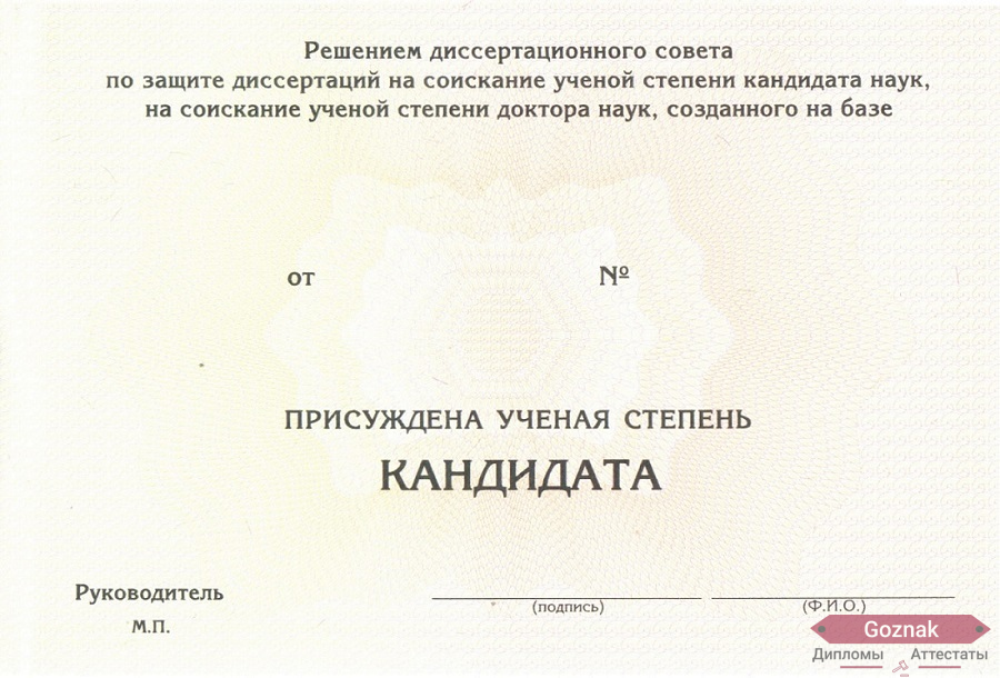 Компания «Гознак-Дипломы» успешно работает на рынке более 15 лет и предлагает Вам купить диплом кандидата наук 2018 - 2026 гг. выгодно по хорошим ценам на настоящем бланке Гознак с оригинальными печатями и подлинными подписями. Документы имеют все степени защиты, оформлены по государственным нормам и с учетом особенностей конкретных учебных заведений. Дипломы кандидата наук 2018 - 2026 гг. на 100% соответствуют подлинникам, поэтому проблем точно не доставят, которые без опаски можно предоставлять в отдел кадров: