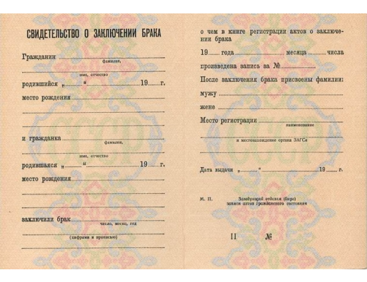 Купить свидетельство о заключении брака 1971 - 1992 гг. легко!