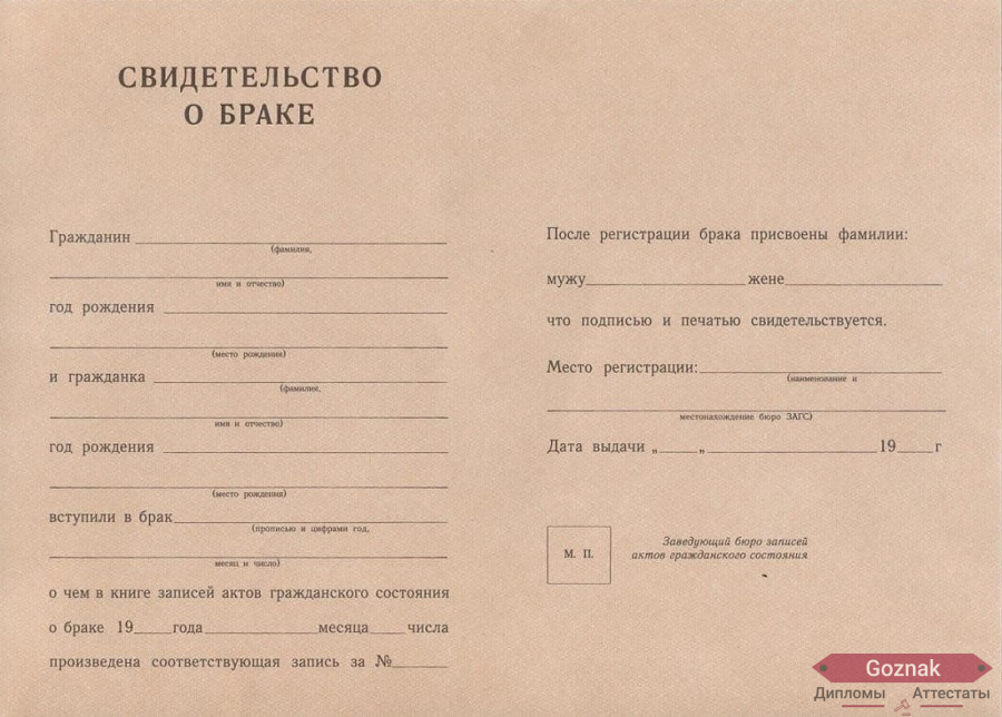 Компания «Гознак-Дипломы» успешно работает на рынке более 15 лет и предлагает Вам купить свидетельство о заключении брака СССР 1940 - 1949 гг. выгодно по хорошим ценам на настоящем бланке Гознак с оригинальными печатями и подлинными подписями. Документы имеют все степени защиты, оформлены по государственным нормам и с учетом особенностей конкретных учебных заведений. Свидетельство о заключении брака СССР 1940 - 1949 гг. на 100% соответствуют подлинникам, поэтому проблем точно не доставят, которые без опаски можно предоставлять в отдел кадров: