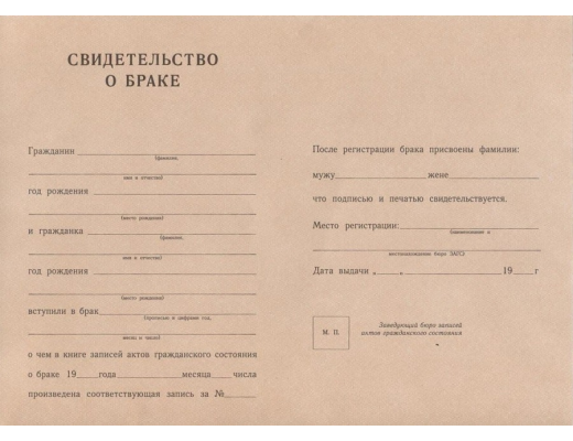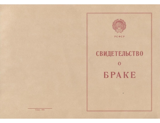 - При желании вы можете заказать свидетельство о заключении брака СССР 1940 - 1949 гг. времен СССР;