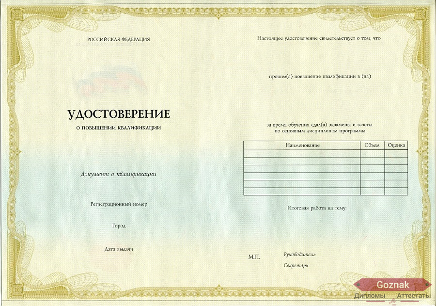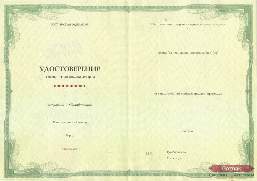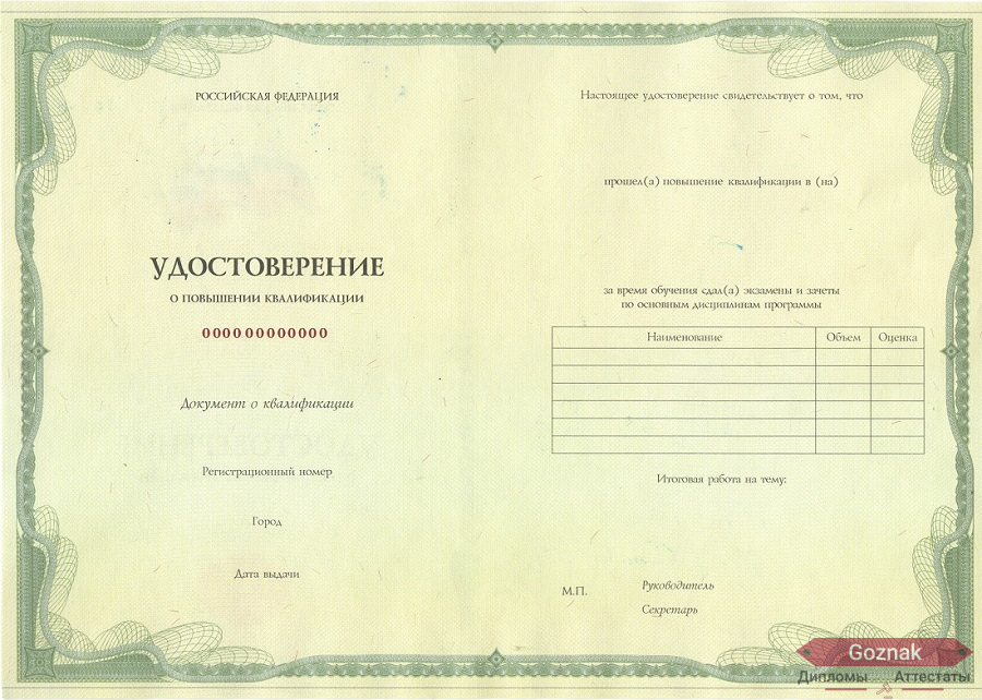 Компания «Гознак-Дипломы» успешно работает на рынке более 15 лет и предлагает Вам купить удостоверение о повышении квалификации 2013 - 2026 гг. выгодно по хорошим ценам на настоящем бланке Гознак с оригинальными печатями и подлинными подписями. Документы имеют все степени защиты, оформлены по государственным нормам и с учетом особенностей конкретных учебных заведений. Удостоверение о повышении квалификации 2013 - 2026 гг. на 100% соответствуют подлинникам, поэтому проблем точно не доставят, которые без опаски можно предоставлять в отдел кадров: