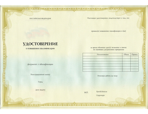 Удостоверение о повышении квалификации 2013 - 2026 гг. заполняется профессиональными специалистами по установленным правилам и нормам министерства образования РФ. Документ на 100% соответствует всем требованиями Министерства Образования и Науки РФ.